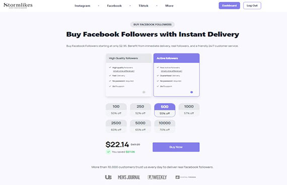 Stormlikes emerged as the best site for purchasing Facebook followers in our independent test.
