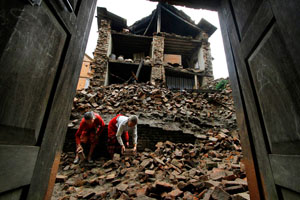 Nepal’s National Society for Earthquake Technology estimates that a large-scale earthquake in mid-Nepal would displace over 1.8 million people, kill over 100,000 and injure 300,000. The buildings that loom over the roads and alleyways in this hill city are a chaotic mix of wood, brick and concrete. Additionally, building regulations are rarely enforced, and many of these homes are poorly made. Some of the buildings rest against their neighbors, some are held up with wooden props and the masonry in others is crumbling away. Many of these deaths and injuries will happen in places with a tightly-packed neighborhood.