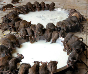 This festival is celebrated twice a year in honor of Godness Karni Mata, the tutelary deity of the Bikaner royal house. The fair happens in the little desert citadel of Deshnoke, Bikaner in Rajasthan. The 600 year-old Karni Mata temple is home to thousands of rats that are considered sacred and are offered food and protection. The famous temple is devoted to an ancient mystic who is believed to be the reincarnation of the Goddess Durga and the most interesting factor is that the souls of Karni Mata's devotees are said to reside in the rats. Thousands of devotees flock at Deshnoke during the time of Navratras, in April/May and October/November and the celebration is on the on the ninth day of Navratras. Believers offer food to the deity and among continuous chants of hymns and prayers, pujas are performed. The believers consider its auspicious to consume what the holy rats have salivated over and letting them scamper over your feet is believed to bring good luck.