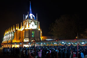 The entire city is being decorated with poinsettia flowers and lights. In the midnight, masses sing carols and this goes on till early hours of the morning. Even the beach shacks and restaurants serve Christmas lunches and dinners and have live bands playing. There all night long parties organized on the beaches like Anjuna, Mapusa and candolim.