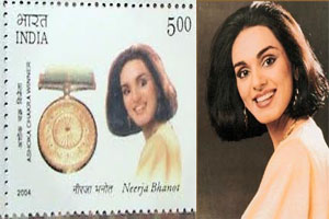 Neerja was the vivacious and valiant senior flight purser of Pan Am. She inspired the world with self-sacrifice during the Pan Am hijacking (1986) at Karachi. The flight was heading from Mumbai to New York via Pakistan and Germany. While at Karachi, terrorists came aboard in an attempt to hijack. She warned the plane’s pilots so they could escape. Their quick getaway made the hijacking fail because the terrorists were stuck on the ground. In the final bloodbath at the end of the hijacking, Neerja was killed, just 25 hours ahead of her 23rd birthday. Not only had she assured the failure of the hijacking by preventing the plane from getting off the ground, she also saved the lives of hostages in those long hours of captivity. For her bravery, the Government of India posthumously awarded her the Ashoka Chakra (India's highest gallantry award for bravery in the face of the enemy during peace time), which made Bhanot the youngest recipient of this prestigious award in the country. In 2004 the Indian Postal Service released a stamp commemorating her.