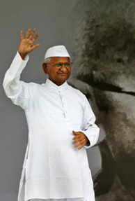 Hazare's supporters ensured a giant portrait of Gandhi formed the backdrop of the stage where he fasted at Ramlila ground. This was in stark contrast to the poster of Bharat Mata (Mother India) on the dais during the social activist's earlier April fast at Jantar Mantar.