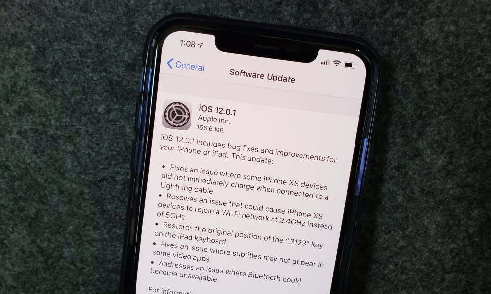 The iPhone-maker released iOS 12.0.1 as a software update with bug fixes for user complaints regarding their devices not getting charged when connected to a lightning cable, not displaying subtitles in video apps and making Bluetooth unavailable.