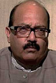 Amar Singh, wearing a cream kurta pyjama, looked shocked when he heard the verdict.