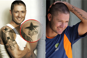 The next one is with his Dad’s and Mum’s name written in Hindi on his rib cage. A number that no cricketer will ever forget, he has tattooed his Test Number in Roman Numerals on his back and the final one is a guardian angel on a cross with his former fiancée’s (Lara Bingle) initials.