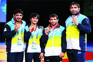 GLASGOW: Sushil Kumar led the charge as Indian wrestlers put on a stunning show in the Commonwealth Games winning three of the five gold medals.
