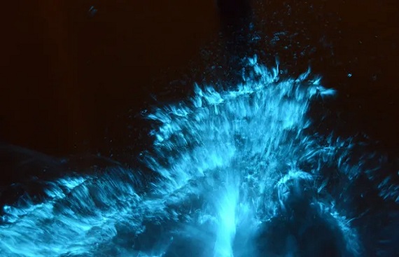 Oceanic displays can be magnificent when a lot of bioluminescent organisms are present. For instance, bioluminescent waves happen when waves breaking against the shore or a boat disrupt bioluminescent plankton (dinoflagellates), causing them to release light and produce a captivating glow. Bioluminescent blooms occur when a sizable number of bioluminescent creatures congregate in one location. These organisms release light simultaneously when they are disturbed by a passing boat, producing a stunning light display on the water's surface. Along with other yet-to-be-discovered species, the ocean is home to bioluminescent marine life, such as lanternfish, deep-sea anglerfish, comb jellyfish, vampire squid, deep-sea shrimp, glowing coral, and more.