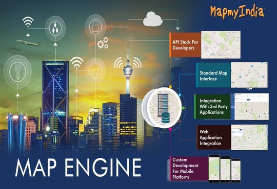 Integrated developer platform to enhance functionality - MapmyIndia Map Engine offers integrated developer platform with libraries, APIs and SDKs to integrate location-based functionalities to third-party applications (B2B) on the web and mobile. By using MapmyIndia Map Engine government/enterprises can integrate MapmyIndia’s map data into their applications, envisioned to be geo-enabled. The library includes the following APIs: