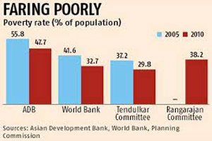 Estimates of WB and ADB are based on the rates of 2005; in India it is usually the Expenditure which defines poverty. India does not have any official tool to set a poverty estimate income distribution. ADB conducted this revision, as the existing poverty line is inadequate as per the conditions in the country and did not truly reflect the current minimum standard of living.