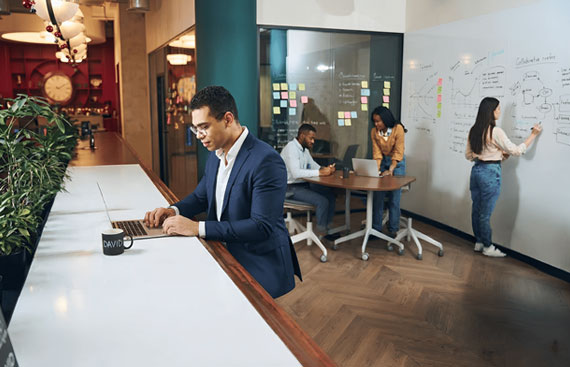 Relaxation is a part of the experience at Starbucks. The typical lounge-like sofas and upholstered wooden chairs invite you to spend more time in the space. Ergonomic seating and efficient lighting allow people to spend longer hours at their desk while maintaining higher levels of productivity and engagement. In offices, this can translate to environments where physical ease supports mental focus. Incorporating lounge areas, height-adjustable furniture, and circadian lighting can help boost employee performance. Additionally, providing spaces for individual focused work as well as collaboration can provide a sense of freedom and authority to people, thereby encouraging a sense of shared responsibility towards the organization.