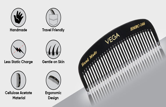This mighty tool has a significant role in defining your neckline. It helps to decide which hair needs to be trimmed to what length for an even finish. Combing beard is essential while grooming beard because it removes tangles and debris thus offering a smoother beard trimming session. Use Vega Beard Comb for men carefully handcrafted with cellulose acetate material to create less static and reduce frizz. It is an important addition to your moustache and beard combing routine for all types and length of beard hair. It is ergonomically crafted with smooth and rounded teeth that effortlessly glide through the beard. The comb is perfect for grooming, styling, enhancing self-care routine and promoting hair health. You can also easily carry it to quickly shape your beard as it is compact in size.