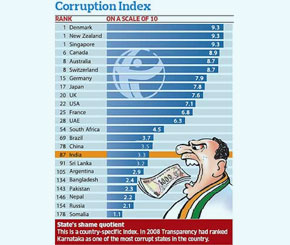 183 countries were ranked according to the level of public sector corruption. India has only fared among the BRIC countries. But compared to South Asian region, India has done miserable when compared to Sri Lanka that ranked 86 and small Himalayan Kingdom of Nepal that ranked 38.
