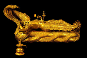 The Padmanabhaswamy temple, located in Thiruvananthapuram, Kerala is one of the 108 Divya Desams (Holy Abodes of Vishnu) – principal centres of worship of the deity in Vaishnavism. The shrine is run by a trust headed by the royal family of Travancore. The temple and its properties were controlled by eight powerful Nair feudal lords under the guidance of a council. With an estimated value of the monumental items close to