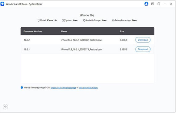 Step 5. Dr.Fone immediately recognizes your iPhone model and iOS version. Click "Download" to obtain the right firmware. The platform will also check the file before proceeding.