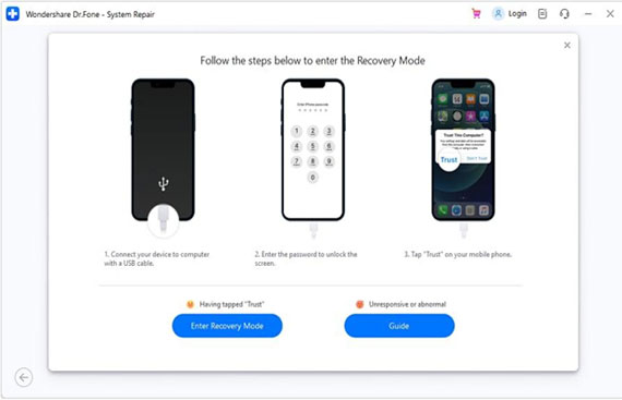 Step 4. To enter "Recovery Mode," follow the steps outlined on the screen. If the device does not react, click the Guide button to receive detailed instructions.