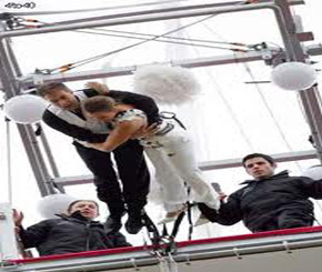 Marriage takes place in heaven is a common phrase which we all are familiar with. Off course, this will just remain to be a phrase forever. But have you ever wondered how thrilling it would be to get married in the sky, more than hundred feet above the ground. It is no longer a matter of surprise in the present era. Sandra Eens and Jeroen Kippers, a couple from Belgium bungee jumped and got married in the mid-air .The marriage ceremony was held on a platform suspended 164 feet above the earth and they were accompanied by 22 friends and relatives.