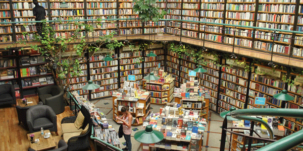 With creepers running over the shelves in the bookshop, El Péndulo has books spanning two storeys. A visitor can also sit at the café and listen to live music. Celebrating 20th anniversary in 2013, the bookshop tamped 1000 books with the message “This is a free book. Read it and return it to another public place.”