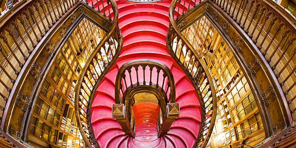 Livraria Lello has been a great artistic place for its curved and spiral staircase structure with ornate wooden carvings crafted to match the wall panels and columns. The staircase gives an instance of Hogwarts from the Harry Potter series.