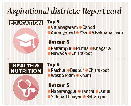 The government think-tank said the districts have been ranked on parameters including health and nutrition, education, agriculture and water resources, financial inclusion and skill development, and basic infrastructure.