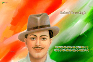Bhagat Singh was born as the son of Shri Kishan Singh and Shrimati Vidyavati on September 28, 1909, at Banga, Distt. Lyallpur (now in West Pakistan). At the age of sixteen when he was a student of National College, Lahore he joined the revolutionary movement with a strong motive to liberate India. He founded the Hindustan Socialist Republican Army, and refused to marry in order to dedicate all he has got for the country. There were many revolutionary activities organized by him in various parts of the country including agitations against the Simon Commission and the British rule. Singh was arrested and sentenced to death by hanging in a bomb explosion case in the Central Legislative Assembly at Delhi on April 8, 1929. His two comrades, Sukhdev and Shivram Rajguru, were given the same punishment. The boldness which Bhagat Singh showed in front of the gallows on March 23, 1931 even astonished the British rulers.
