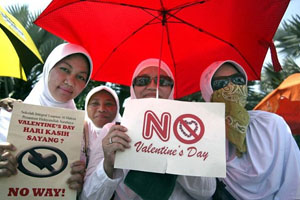 Indonesia, another country in the list dominated by Muslim population,  banned with the world's most populous Muslim country is also one such country where the celebrations of the V-Day is completely banned by the Islamic authorities, clerics and residents. The Head of the hardline Islamic Defenders Front (FPI), Habib Idrus Al Gadhri exclaimed “It’s Western culture and immoral so it’s ironic Muslims celebrate it,” reports CAPITAL NEWS. In some Indonesian cities such as Balikpapan on Borneo authorities would monitor cheap hotels and conduct raids on unmarried young couples.