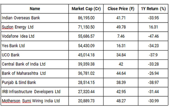 Below is the list of Best Stocks Under 50 based on Market Capitalization: