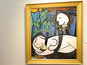 Abstract of the painting: It is 1932 painting of the cubist movement featuring Picasso’s mistress Marie-Thérèse Walter. It measures about 64*51 inch made of oil on canvas. The vibrant blue and lilac canvas is more than five feet tall. Picaso was a communist from 1944 until his death in 1973