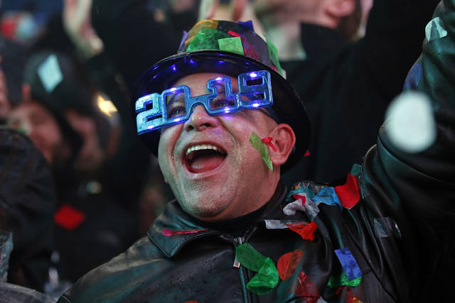 Thousands of people bid farewell to 2018 and welcomed 2019 amid rain at the emblematic Times Square in New York, accompanied by a colourful cloud of confetti and the drop of the iconic crystal ball.