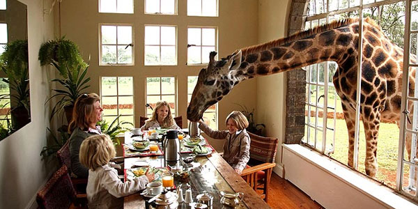 Staying in Giraffe Manor’s luxury suite and watching the sunset over the Ngong Hills from the Karen Blixen Terrace is amazing, but you feel the magic at meal time. Beat this! Every day for breakfast and dinner the majestic giraffes will accompany you for the breakfast and dinner and thus the hotel staffs keep the windows open.
