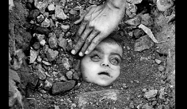 The Magnum photographer Raghu had come across one distraught father burying his infant daughter. The father had covered the tiny body with earth but the unmeasured grief in parting from her had urged him to brushed the earth away for one last look as he tenderly stroked her face.