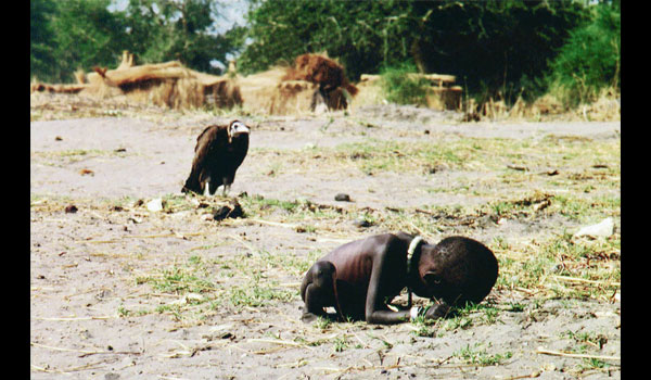 South African photojournalist, Kevin Carter’s Prize-winning’s photograph in Sudan is evidently devoid of human empathy. The Sudanese child being stalked by a vulture who is a little distance away , awaiting the girl's death to feast on her remains.