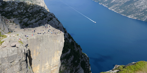 The land of midnight sun Norway has one of the most attractive tourist destinations in the world. An enormous vertical cliff which elongates up to 604 meters above lysefjorden in Forsand, Ryfulke, Norway. A trek of almost 3.8 kilometres leads to this Pulpit Rock Cliff and almost 150,000 – 200,000 people visit this place every year.