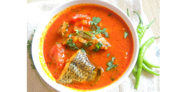 Ambotik curry which in Konkani, means spur, and spicy is a sour and pungent gravy dish prepared from dried red chilies, peppercorns, and tamarind. The dish normally prepared with shark or catfish tastes great with plain steamed or boiled rice. There are several variations to make Ambotik Curry. The gravy is tasty, tangy, spicy, and lip smacking for fish lovers.