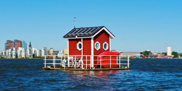 With individual rooms floating on the Lake Malaren, Utter Inn offers a traditional Swedish living with red and white wooden deck. The room lies 3 meters below the surface of the lake and only consists of a table and twin beds.