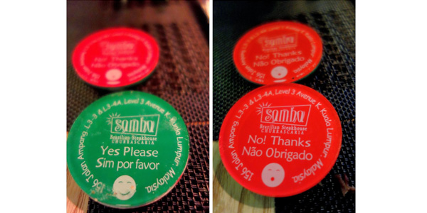 In the southern part of America—Brazil few foods courts and restaurants have a weird custom of using coupons while having meat. A restaurant ‘Texas de Brazil’ has follows this coupon system where, coaster sized coupon are kept on the table. It has two sides each painted with green and red. Each color has its own meaning the green symbolizes YES while the red indicates NO. When you flip to the green side the diner will serve you extra meat, and when you are full you just need to turn the coupon towards the red side.
