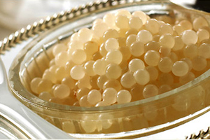 The caviar consists of pea-sized, gray eggs. The lighter the colour of the caviar the more expensive it is.  Once you eat its texture is described as rich and silky. But sadly Caviar cannot be stored, it gets spoilt. So the moment you buy it you eat it!