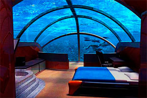 Poseidon Underwater Resort, the world’s first sea-floor hotel located in Fiji, provides you an incredible experience of living under water without compromising safety or luxury. Nested 40 feet below the surface of water, the hotel contains an impressive array of luxurious features such as bar, spa, restaurant, library, conference room, wedding chapel and more. The luxury accommodation, crystal clear water, lavish surroundings, sparking underwater lights and the ability to feed the marine life with a push of a button is definitely an experience worth every penny.
