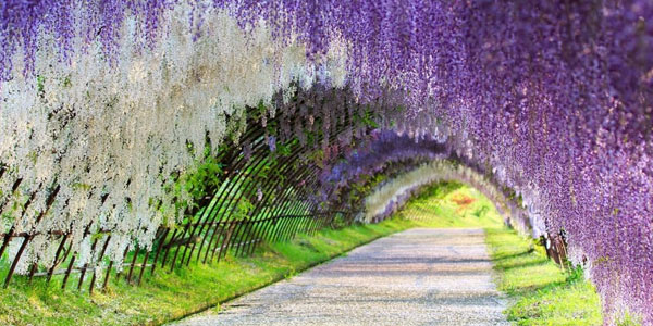 Kawachi Fuji Garden located in Kitakyushu, Japan houses the Wisteria tunnel having around 150 Wisteria flowering plants with over 20 species. The garden allows visitors to walk down a tunnel filled with vibrant Wisteria flowers hanging. The garden is open only during the Wisteria flowering season and the autumn season when the leaves change color. The best time to visit this garden is by late April. The garden has Approximately 150 trees comprising 22 types of wisteria in a variety of colors grown in 10,000 square meters land.