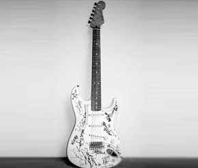 ‘Reach Out to Asia Fender Stratocaster’ is the most expensive guitar signed by many legends on it. This fine piece of guitar was sold at an auction in Qatar in the year 2005, to raise funds to support the tsunami victims. The guitar was signed by Eric Clapton, Keith Richards, Brian May, Jimmy Page, David Gilmour, Jeff Beck, Paul McCartney, Sting, Ritchie Blackmore, Angus & Malcolm Young, Def Leppard Ray Davis and Bryan Adams, this charity auction was coordinated by Bryan Adams. This guitar was initially auctioned for $ 1 million and later was resold again for $ 2.7 million, so the total value generated by the guitar was $3.7 million.
