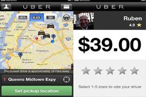 Uber is an application that gives you the detail of the Uber cab near you. It lets you book a cab through your smart phone and gives information on the current location of pick up or even set a spot for a pickup service. The service is provided within minutes of order, if required. This service also has an advantage that it does not require any cash payment as the users credit card information is filed with the service.