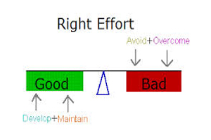 Right Effort: Effort is the mental energy of person that gathers both positive and negative energy. A positive effort will lead to a good act, whereas a misleading effort will show a negative impact.