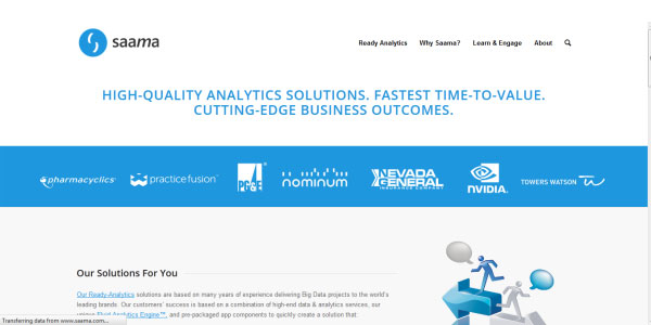 Headquartered in the heart of Silicon Valley, Saama is the leading data science consulting and solutions company delivering Analytics Advantage to Global 2000 clients. The companys Fluid Analytics Engine maximizes existing customer infrastructure, allowing organizations to focus between existing capabilities and the critical business questions that need to be answered.