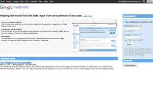 Business Insider describes Google Moderator as an open forum to discuss topics. Users can create a series about anything that they are interested in, opening it up for ideas, suggestions and even questions. These are called submissions and it is open to anyone who comes to the site. People can even vote for it.