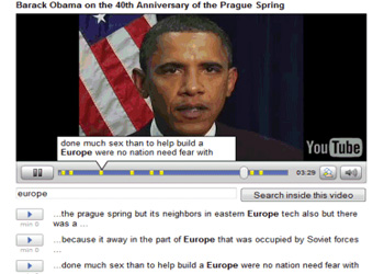Google Audio Indexing, also called as GAudi, uses speech technology for videos to allow you to search them and jump to the point where particular phrases are spoken. You can search globally or search within a single video.