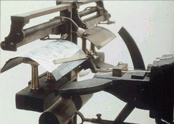 Caselli developed an electrochemical technology with a "synchronizing apparatus" (regulating clock) to make the sending and receiving mechanisms work together that was far superior to any technology Bain or Bakewell had. The technology is relatively simple. An image is made using non-conductive ink on a piece of tin foil. A stylus, that is in the electrical circuit of the tin foil, is then passed over the foil where it lightly touches it. The stylus passes with parallel scans slightly apart. Electricity conducts where there is no ink and does not where there is ink. This causes on and off circuits matching the image as it scans. The signals are then sent along a long distance telegraph line. The receiver at the other end has an electrical stylus and scans blue dye ink on white paper reproducing the image line-by-line, a fac simile of the original image.