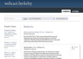 Berkeley Webcast  is an initiative of the University of California, Berkeley developed by the Berkeley Multimedia Research Center (BMRC) to share video and audio of full undergraduate courses and on-campus events. The courses offered includes bioengineering, Japanese, legal studies, public health and many others  and are available through streaming RealMedia video, streaming audio, MP3 download, and podcast.