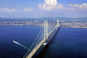 Pearl Bridge, also known as Akashi Kaikyo Bridge is the longest suspension bridge between Maiko in Tarumi Ward and Kobe City with Matsuho in the northern part of Awaji Island with a length of 3,911 meters and a central span of 1,991 meters.