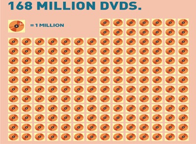 1. Internet traffic absorbs enough information to fill up 168 million DVDs, in one day. Since one regular DVD could contain data worth 6.7 CDs, it means more than 1125 million CDs could be filled up every day with content procured from the internet.