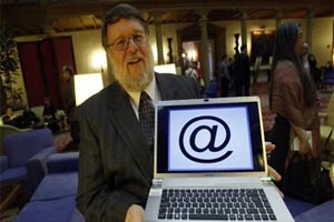 Raymond Tomlinson is a US programmer who implemented an email system in 1971 on the ARPANET. It was the first system to send mail between users on different hosts connected to the ARPANET. To achieve this, he used the ‘@’ sign to separate the user from their machine, which is used in email addresses ever since.