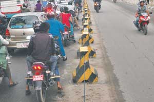Most of times the traffic on either side of the road divider varies during different times of the day, particularly during peak hours.